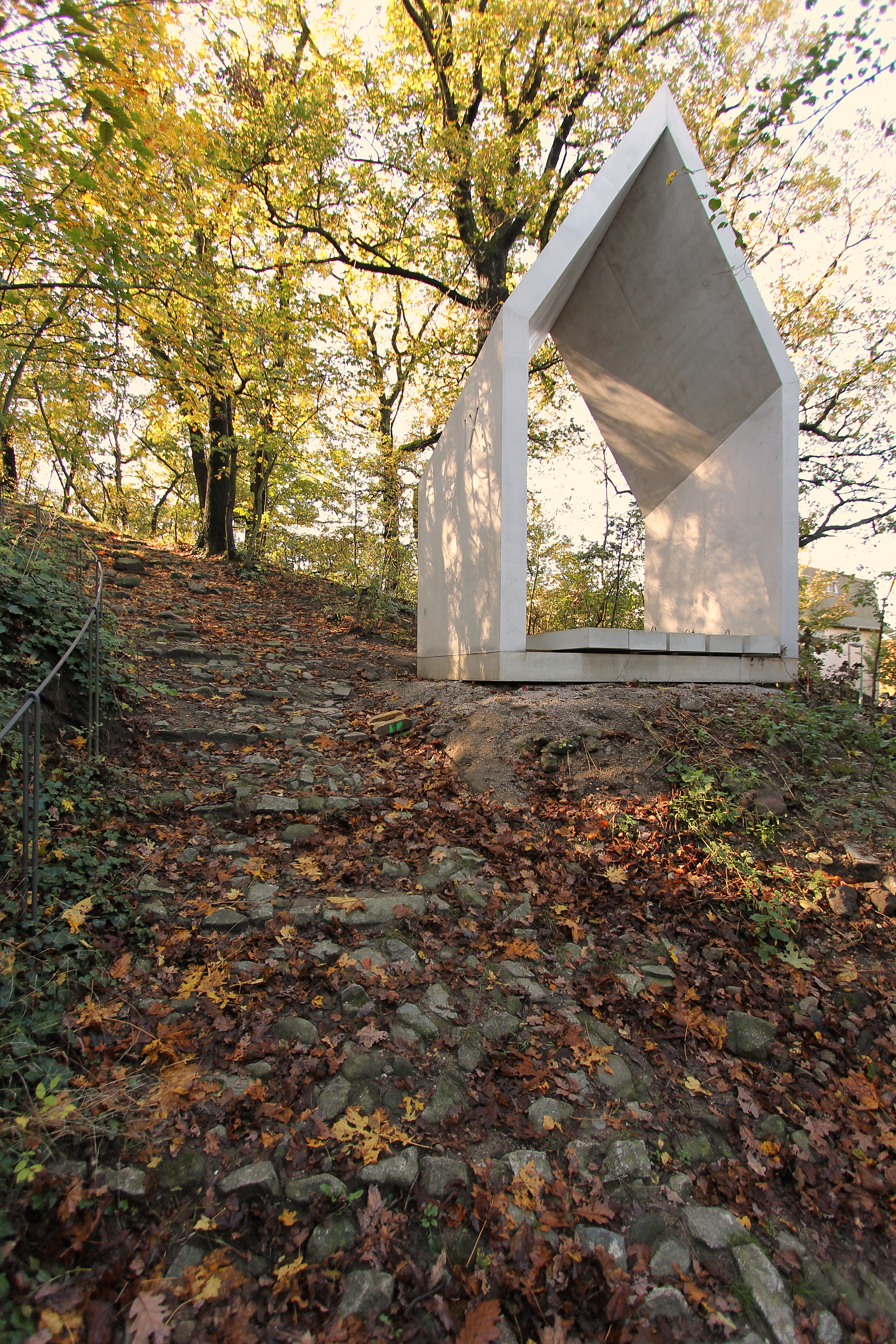 Prvá časť - vytvorenie nástupu do tohto verejného priestoru , nahradenia cesty ,ktorá bola výstavbou Pražskej ulice zlikvidovaná a jej napojenie na zvyšok pôvodnej kamennej cesty s vyvrcholením pri kríži.