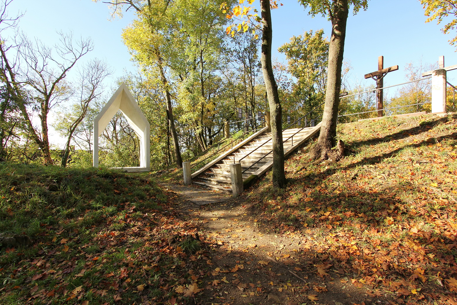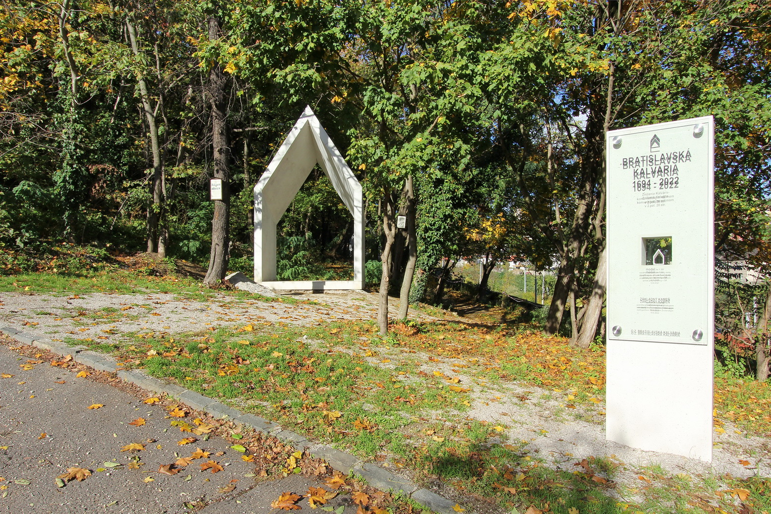 Sochy po bokoch kaplnky -v miestach pôvodných zastavení ,by sa mohli vrátiť späť ako repliky, na zemi vedľa človeka, prechádzajúce spolu s ním časom ďalej ...