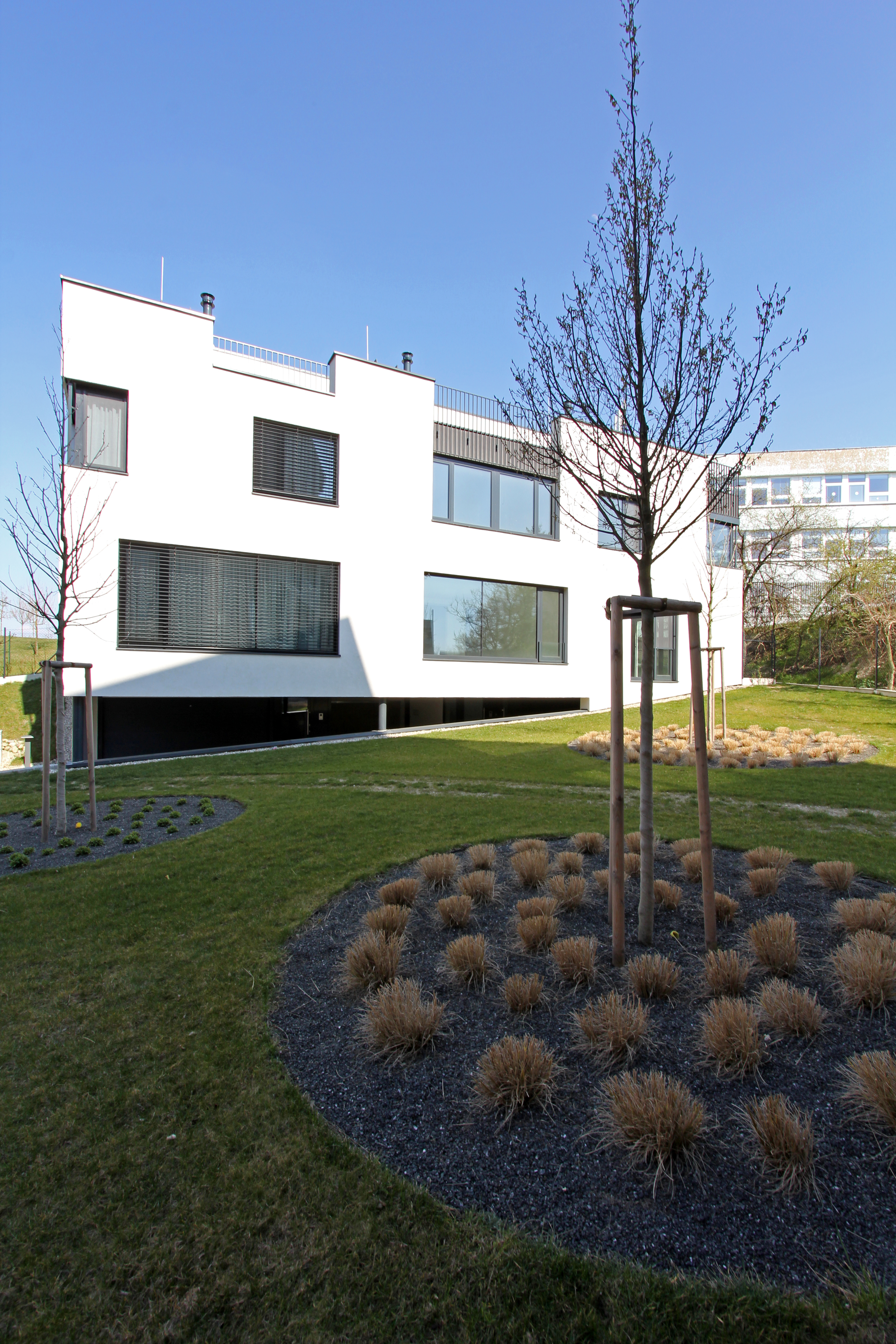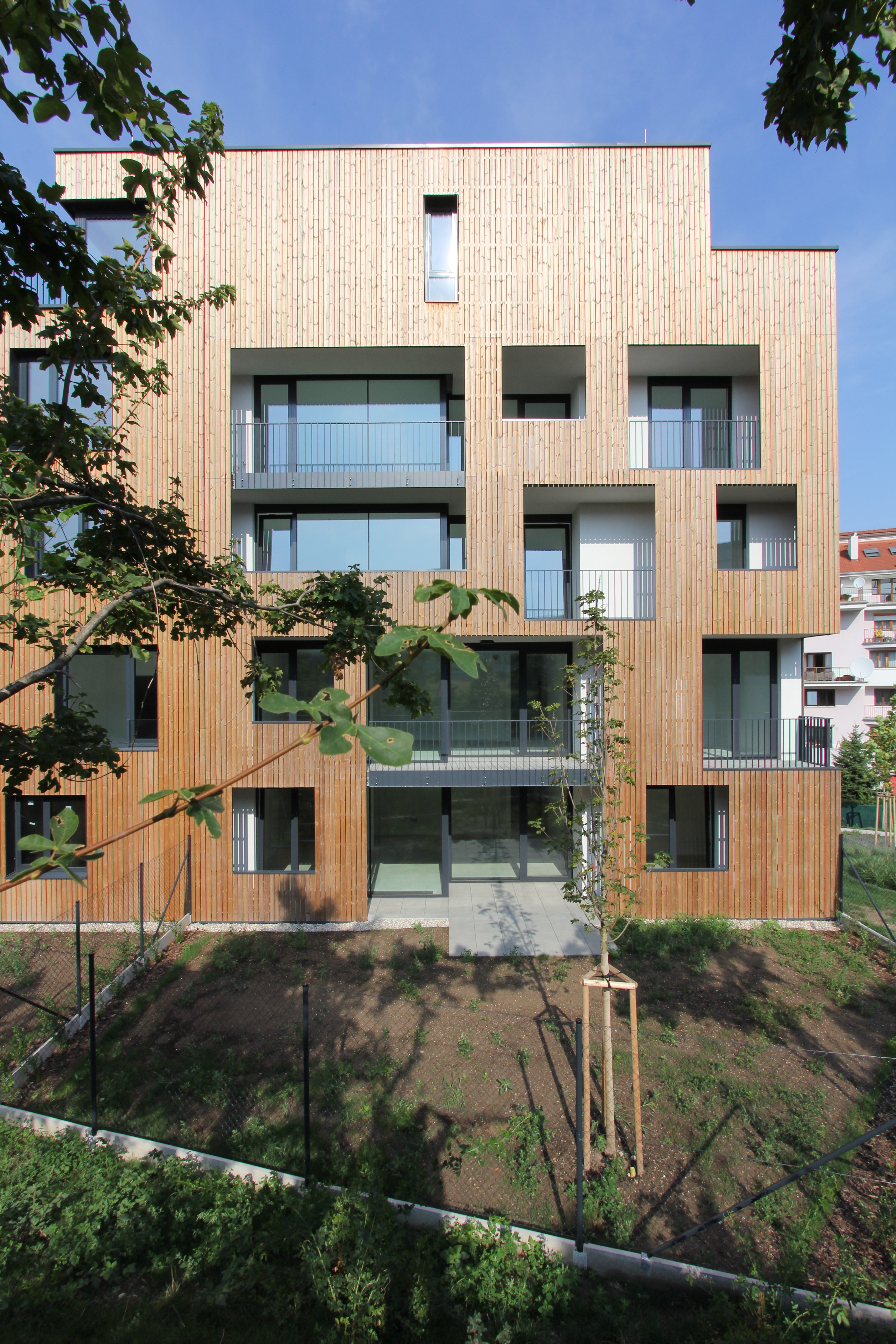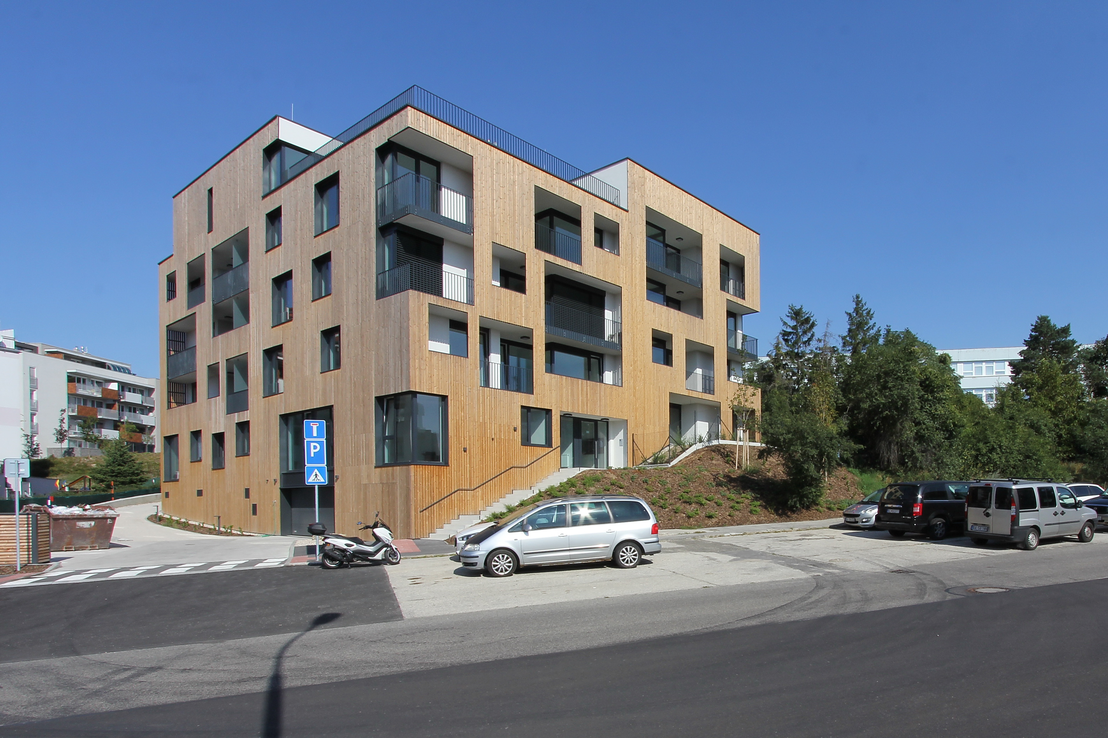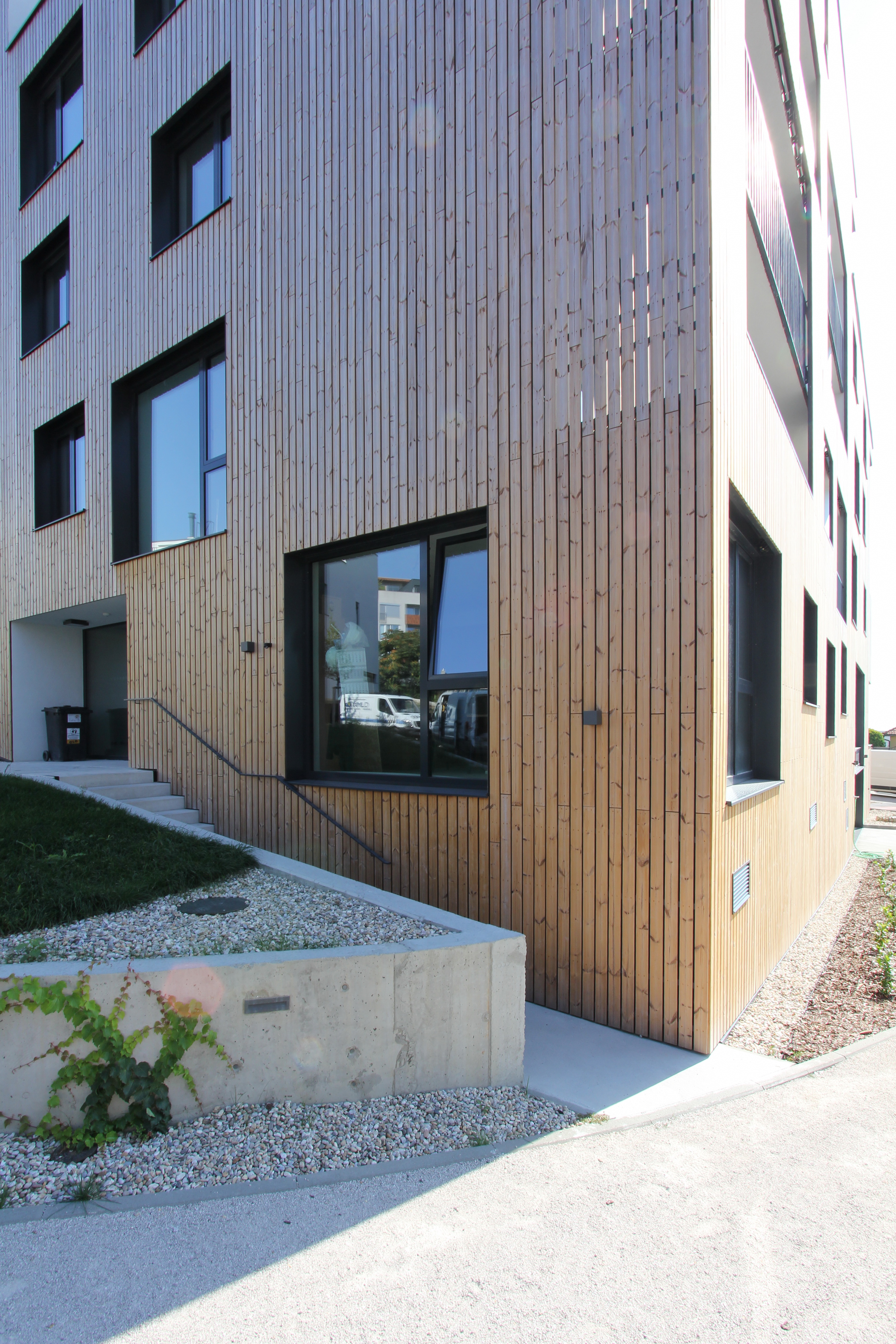 Primárnym konceptom bolo vytvoriť mierku budovy, ktorá zapadne do zložitého urbanistického prostredia. Tento prechod medzi objemami okolitých budov sa docielil „optickou ilúziou mierky budovy“ a to jej pôdorysným natočením, jej prispôsobením sa tektonike jestvujúceho terénu a v neposlednom rade striedaním rôznych veľkostí otvorov na fasáde. Sekundárnym konceptom bolo vytvoriť kompaktnú hmotu objektu, v ktorej sa zjednotí fasáda stien, balkónov a loggií pri zachovaní striedania rôznych veľkostí otvorov na fasáde. K tomuto sa zdalo ako najvhodnejší materiál použiť drevenú latu, ktorá môže zároveň tvoriť kryt prevetrávaného obkladu steny, alebo transparentnú stenu, či zábradlie balkónu.
